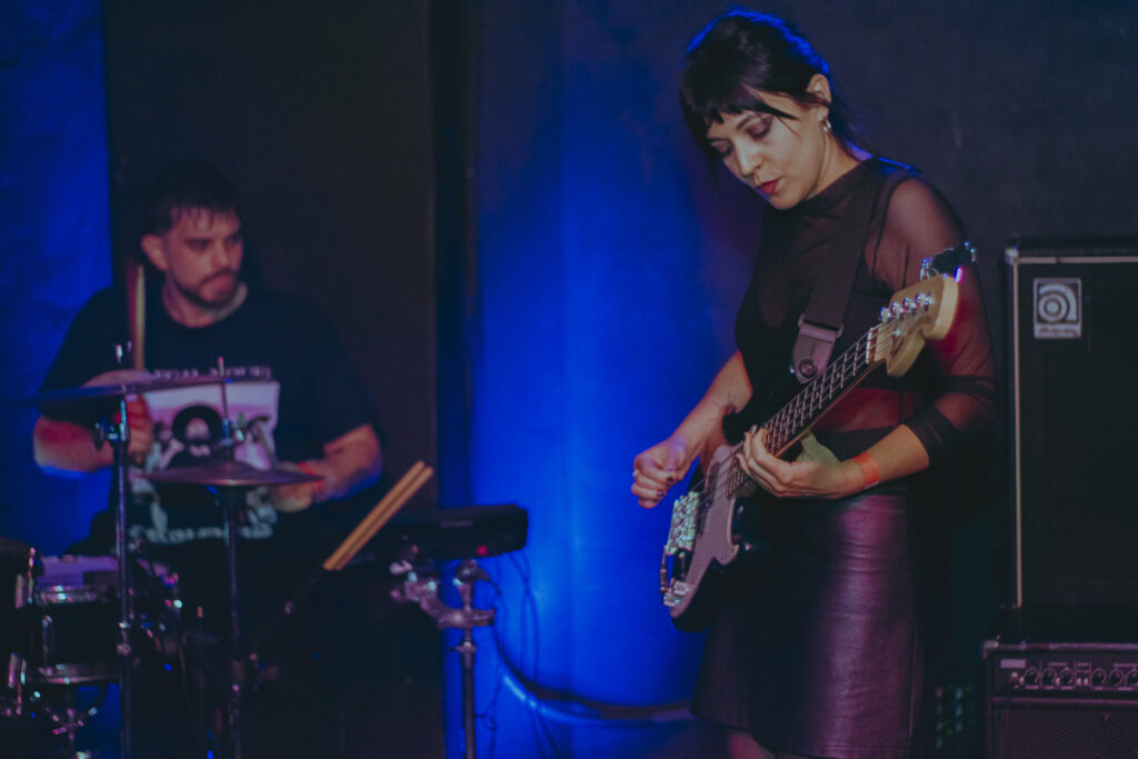 Ya en las penumbras del subsuelo, la apertura estuvo a cargo de Juvenilia, con un repertorio atravesado por el post punk y el synth wave. La banda -que está presentando nueva formación- abrió la noche con una brillantez solemne, con composiciones que guiaban a un viaje entre el amor y la pérdida. La lista de canciones repasaba, fundamentalmente, temas del recordado y larga duración Obras de juventud (2018), a la vez que alternaban con anticipos del nuevo disco en el que se encuentran trabajando.