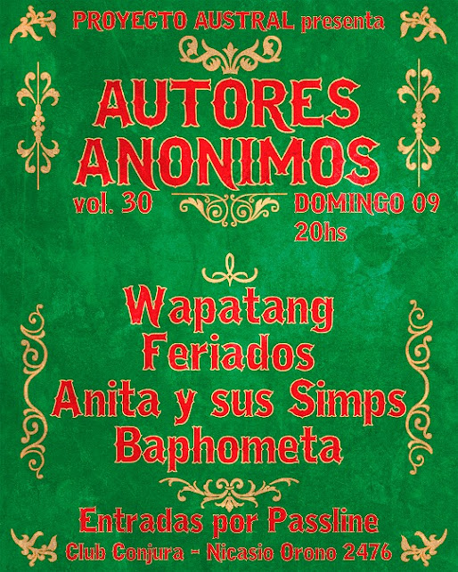 La cita es, entonces, este domingo 9 de noviembre junto a Anita y sus Simps, Wapatang y Baphometa. Nos avisan que, además, el lugar pondrá a disposición juegos de mesa, metegol, pinball y mucho más.