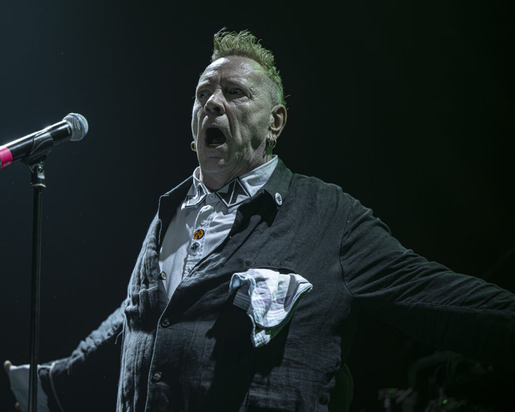 Lydon ocupaba el lugar sobre el escenario sin moverse demasiado. La primera impresión, entonces, fue física. El cuerpo no respondía a ninguna idea clásica de frontman: permaneció casi todo el show en el mismo sitio, incluso predominó el control cuando parecía desprolijo.